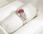 濃い色合いと綺麗な輝きのピンクトルマリンを留めた指輪です。枠はSV925製(ロジウム厚メッキ)です。