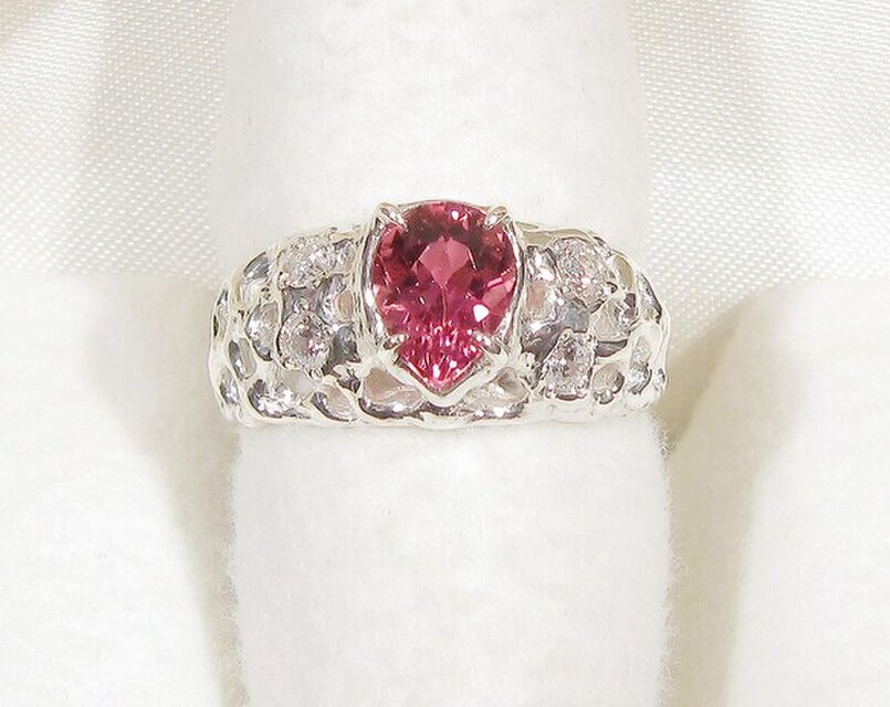1.25ctピンクトルマリンとSV925の指輪(リングサイズ:12.5号、サイズ変更可、ロジウム厚メッキ、天然石)