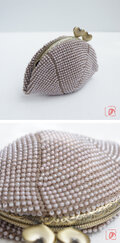 パールピンク2mmの日本製シードビーズをひとつぶづつ全面に編み込んだ、上質ながま口です。手触りなめらか、繊細な編み地が特徴です。