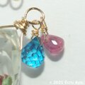 素材:クォーツ ペアシェイプ、宝石質ピンクトルマリンAAA ペアシェイプブリオレットカット、宝石質スイスブルートパーズAAA ドロップブリオレットカット、その他全て14kgf