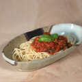 釉薬で描いたモダンな模様の鉢、煮物やサラダなどを盛り付けやれる大きさです。楽しめる塗り分け小判鉢・・・