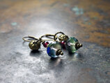 ウランガラスと蓮華のブラス、ガーネットを繋いだピアスです。