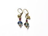 ウランガラスと蓮華ブラスビーズ、ガーネットのピアス(淡)