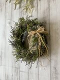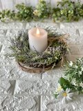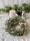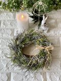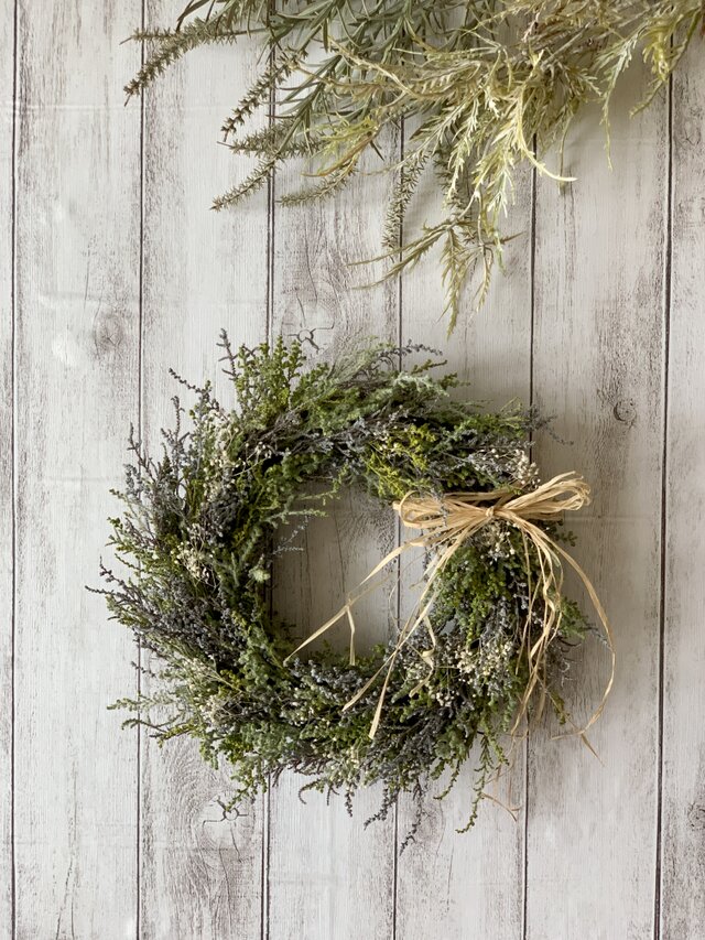 リーフの中にウオッシュラベンダーとカスミソウを使ってアンティーク系ナチュラルに仕上げたリースです。
