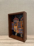 ダンボールに布を切り貼りして、立体オブジェを作りました。