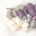 ホワイト、銀鼠、ライラック色等の羊毛をたっぷりと使用し、