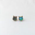 キラキラと煌めく螺鈿を使用した 猫形のピンブローチ。