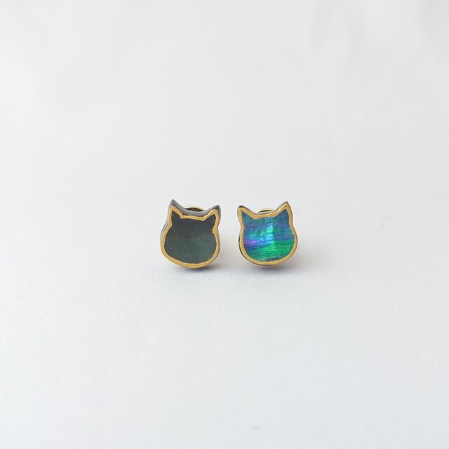 左の猫ちゃんは黒蝶貝、右の猫ちゃんは青貝(アワビ貝)。
