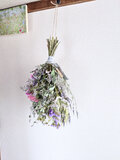 ハーブ畑で育てたスターチスやローズマリー、ラベンダー、ユーカリなどを使ったカジュアルドライフラワー・スワッグです。