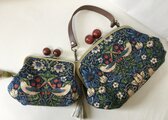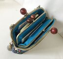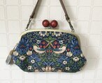 ウイリアムモリス いちご泥棒で作りました木玉のがま口長財布バッグです