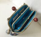 中の口金にもいちご泥棒柄を使い内布はコットンリネンを使いました