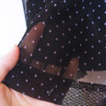 \黒地に紫の小さなドット柄。透け感のあるメッシュの生地で、裏地が付いています/