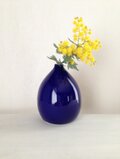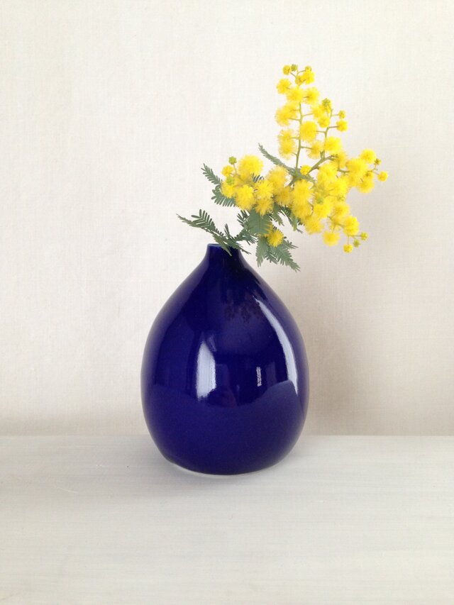 艶のあるブルーの釉薬を使用した一輪挿しです。