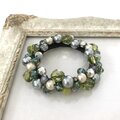 オリーブ グリーン の クロッシェ シュシュ 黄緑 緑 かぎ針編み ビジュー ビーズ ヘアゴム まとめ髪