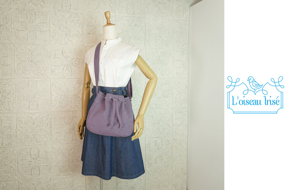ヴィンテージ加工された8号帆布で、ドロストデザインが可愛いショルダーバッグを仕立てました。