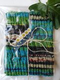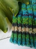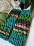 深い海のような色合いの、手編みの短めのレッグウォーマーです。