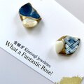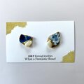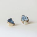 有田焼 陶片 x 金継ぎ ピアス イヤリング (ブルー陶片、マザーオブパール)