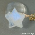 此方は高品質レインボームーンストーンのクレセントムーンブリオレットと、宝石質レインボームーンストーンAAAのスターカットです。