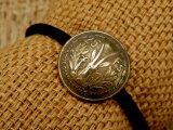 フランス領西アフリカ時代の金色に輝く25フランコインをヘアゴムと芯合わせしコンチョ型に加工した作品です。