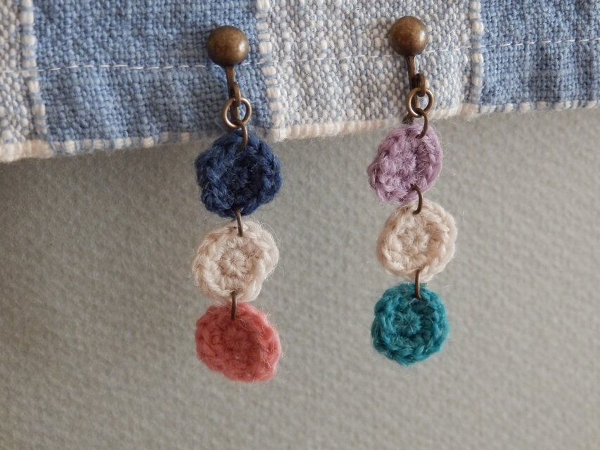 イングランド製のウール刺繍糸でころころ編んだイヤリングです。