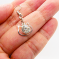 猫フェイスモチーフにキラキラ揺れて輝く大きめのラインストーンのフックピアス