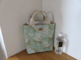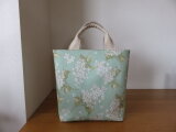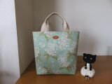 リバティのグリーン系のアーカイブライラックを使った、ちょっと大きめのトートバッグを作りました。