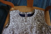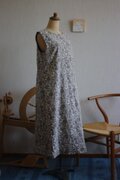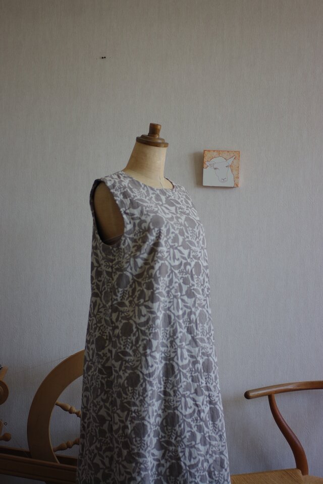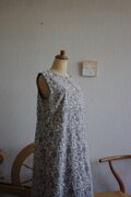 オフホワイト×グレージュの木版更紗でワンピースを作りました。