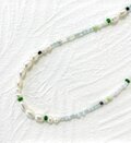 グリーンベースのビーズとパールの組み合わせがさわやかな印象のネックレスです。