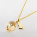落ち着いた輝きをたたえるゴールドシャドーのスワロフスキー・クリスタルがゴールドのネックレスにエレガントさをプラスします