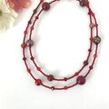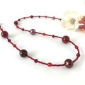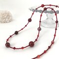 赤色の上品なロングネックレスに仕上げました。