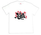 Tシャツ生地/白、インク/黒と赤、正面に図案、背中面は無地