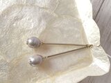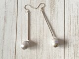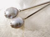 【フックピアス】★6月誕生石★ロングバーの淡水パール・バロック・グレー★