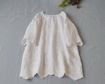 リネン100%贅沢総刺繍ポケット付きシンプルな大人可愛い五分袖ワンピース♪ -