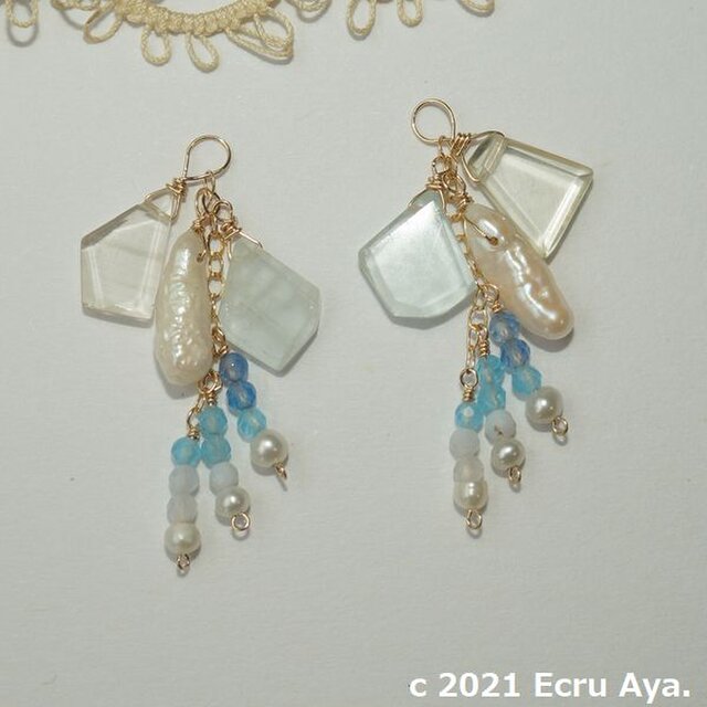 今回は爽やかなレモンクォーツとミルキーアクアマリンのラフスライスカットで、爽やかなイメージのピアスチャームをお作りいたしました。