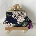 ライラックの花がちょっと薄ピンクがかっているのが黒地に映えて上品ながら可愛い仕上がりになっています
