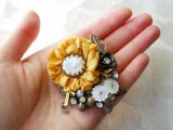 【ぶらん】リボンフラワーのブローチ(マンゴーイエロー)