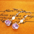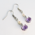 かわいい猫フレームのスワロフスキー・クリスタル(ヴァイオレット)と淡水パールを組み合わせた大人可愛いフックピアス