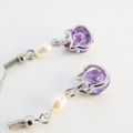 かわいらしい猫のフレームにスワロフスキー・クリスタル(ヴァイオレット)をあわせた猫モチーフに淡水パールを加えたフックピアスです