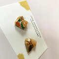(受注制作)有田焼 陶片 x 金継ぎ ピアス イヤリング (オレンジアベンチュリン、シェル)