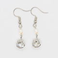 かわいい猫フレームのスワロフスキー・クリスタルと淡水パールを組み合わせた大人可愛いフックピアス