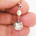 かわいらしい猫のフレームにスワロフスキー・クリスタルをあわせた猫モチーフに、淡水パールを加えたフックピアスです