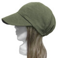つば広キャスケット◆鹿の子織コットンニット/杢オリーブ ◇紫外線対策・ゆったりサイズ・小顔効果・オールシーズン着用◇