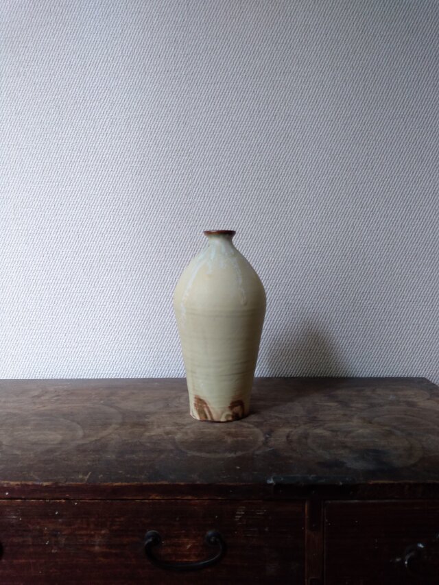 二種類の釉薬を掛けた粉引きの花瓶です。粉引きの風合いが味わい深い花瓶です。