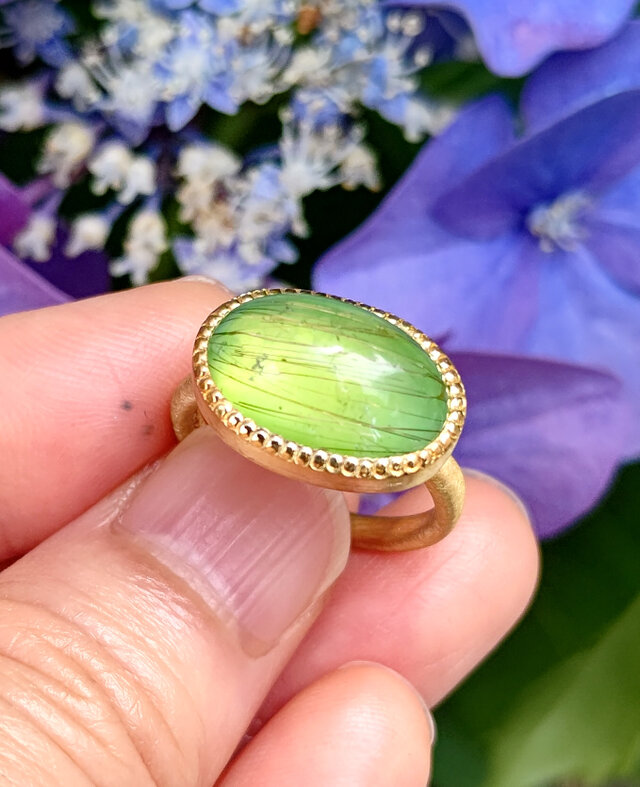 ルチルクォーツ×ウグイスメノー ダブレット OVカボ シルバーSV925リング