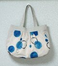 前後正面の真ん中にギャザーを寄せ、ふんわりとした表情に仕上げたバッグです。内側にはポケットをひとつつけています。入れ口とマチの部分に芯地を使用し、丸いシルエットが保持するようにしています。入れ口部分には簡単に開閉できるマグネットボタンをつけています。