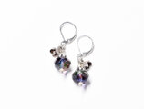 ウランガラスと小さなお花カレンシルバーのピアス(パープル&ブルー)