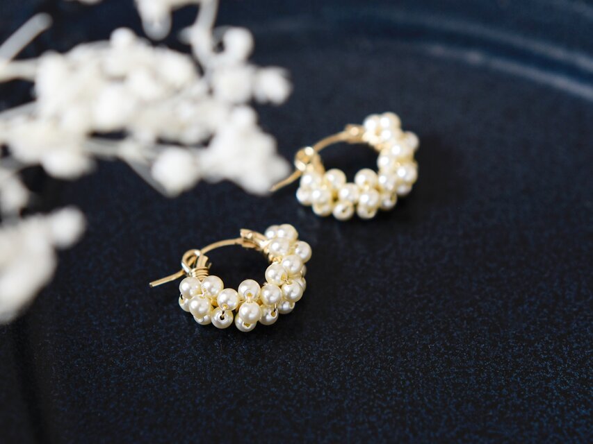 【14kgf ピアス・小サイズ】パール レースフープ フープピアス