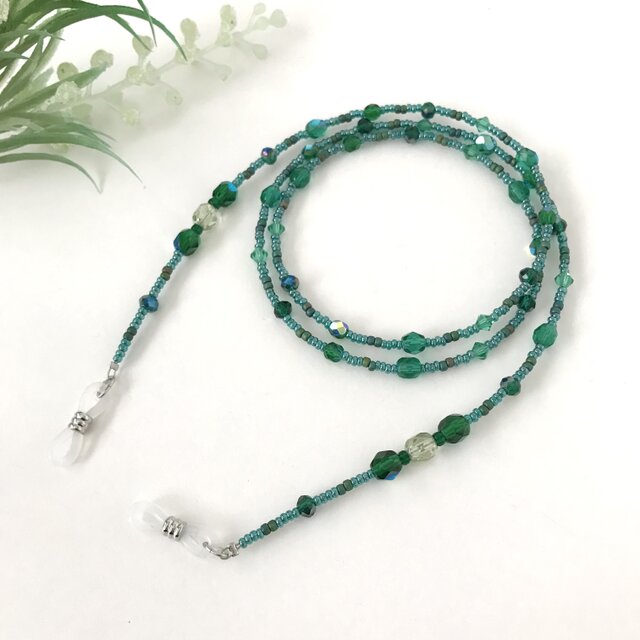 #メガネチェーン #グラスコード #眼鏡チェーン #メガネコード #ビーズアクセサリー #母の日 #グラデーション #チェコガラス #シック #シンプル #キラキラ #デイリー #クラシカル #眼鏡コード #緑 #上品 #軽い #エメラルド #グリーン #アンティーク #クラシック #メガネストラップ