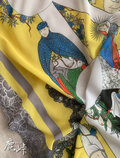 それぞれが一見癖のある絵柄ですが、首に巻いたり肩に羽織ったりすることで、ドレープで絵柄が見え隠れするためそれ程強く主張しません。