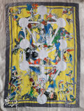 タロットと生命の木柄の大判ショール 幅110cmタイプ(レモンイエロー系)